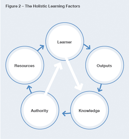 The above activities show that education for older adults can be organised based on five factors (adapted from the ancient Asian concept of BaZi2); namely: Learner, Resources, Outputs, Knowledge and Authority, all linked in a holistic interactive loop as shown in figure 2.