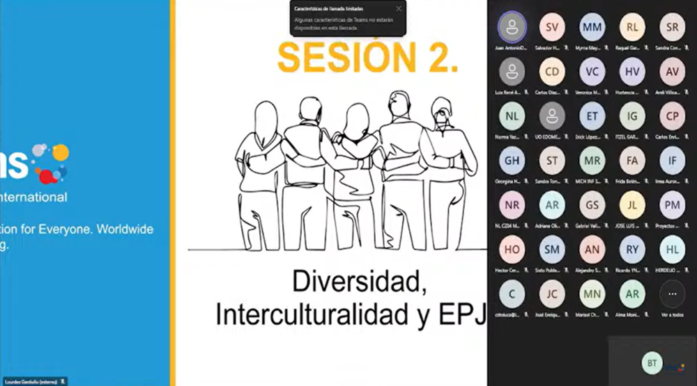 In 2023, we developed what we call the “Territorial Extension Proposal”, which as a first initiative included four online Awareness, Reflection and Analysis Sessions on Human Rights and ALE Law, Diversity and Interculturality, Gender and ALE and Migration and ALE, aimed at staff of the National Institute for Adult Education (INEA) in Baja California Sur, Michoacán, Nuevo León, State of Mexico and Mexico City.