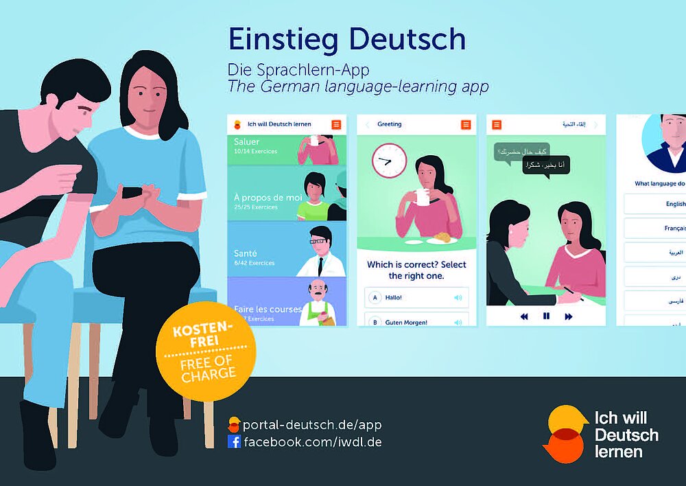 The app aims to impart basic skills in German through “chunk learning”. “Chunks” are fixed expressions such as “How are you?”, and routines which for instance introduce a polite request such as “Could you please…?” These useful phrases help to quickly acquire basic communication skills, and generally facilitate social contact with the German-speaking population.