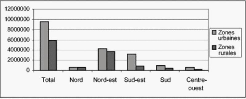 Graphique 2B: analphabètes de 15 ans et plus, Brésil (2000)