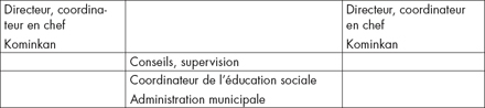 Dans la loi sur l’éducation sociale, il est indiqué que les kominkans sont placés sous la responsabilité des services publics d’éducation sociale des municipalités (villes et villages).