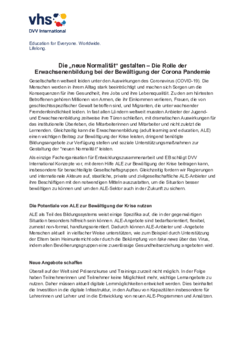 Positionspapier: Die Rolle der Erwachsenenbildung bei der Bewältigung der Corona Pandemie (2020)