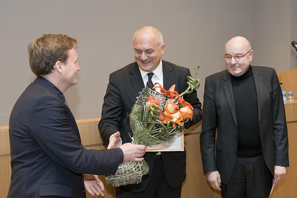 Die Laudationen hielten Prof. Dr. Georgi Dvali, Leiter des Lehrstuhls für Theoretische Physik und Humboldt Professor an der Ludwig-Maximilian-Universität München, und Prof. Dr. Günther Schauerte, Vizepräsident der Stiftung Preussischer Kulturbesitz. Grußworte hielten außerdem Herr Ortwin Hennig, Botschafter der Bundesrepublik Deutschland, Herr Mikheil Giorgadse, Kulturminister Georgiens, Frau Ketevan Natriaschvili, Stellvertretende Bildungsministerin und Frau Khatuna Totladse, Stellvertretende Außenministerin.