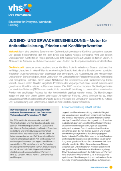 Download Fachpapier „Jugend- und Erwachsenenbildung – Motor für Antiradikalisierung, Frieden und Konfliktprävention“ (PDF)