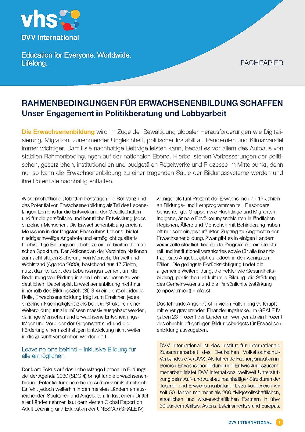 Um die Relevanz der Erwachsenenbildung zur Armutsbekämpfung aufzuzeigen, haben die Regionalbüros im Nahen Osten und in Südostasien Good-Practice-Beispiele aus ihren Regionen gesammelt. Daraus ist…