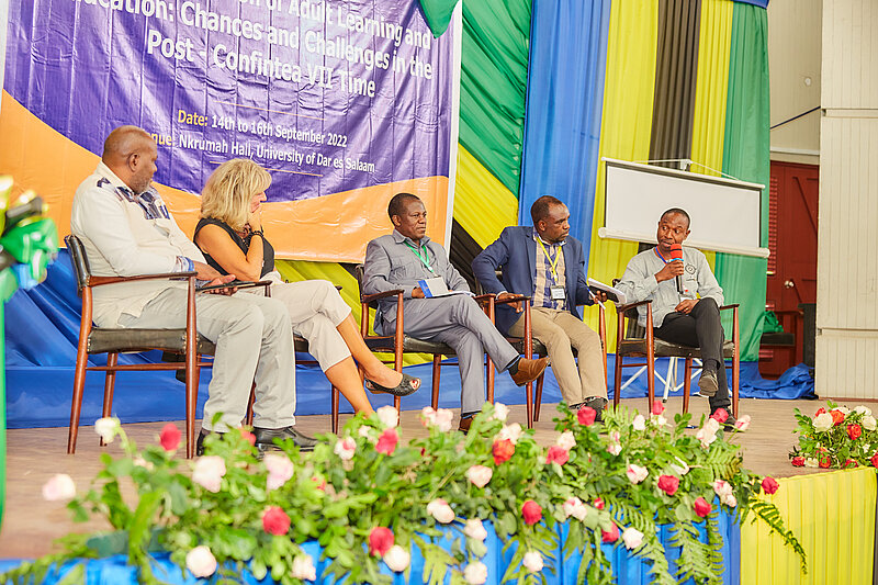 Die regionale Konferenz zur Professionalisierung der Erwachsenenbildung mit dem Titel „Chances and Challenges in the Post-Confintea VII Time“ fand am 14. und 15. September 2022 an der Universität von Dar es Salaam, Tansania, statt. Mehr als 100 Gäste aus den drei Partnerländern der Region East/Horn of Africa (Äthiopien, Tansania, Uganda), darunter Vertreter*innen von Regierungen, Hochschulen und zivilgesellschaftlichen Organisationen, nahmen an der Veranstaltung teil. Christoph Jost, Geschäftsführer von DVV International Deutschland, Johann Sperrfechter, Leiter der Regionalen Entwicklungszusammenarbeit bei der Deutschen Botschaft in Tansania, Angela Owusu-Boampong, Education Programme Specialist am UNESCO Institute for Lifelong Learning, und Katarina Popovic, Generalsekretärin des Internationalen Rates für Erwachsenenbildung, diskutierten die Umsetzung des Aktionsrahmens von Marrakesch (MFA) aus ostafrikanischer Sicht.